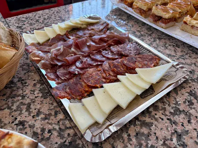 Selección de embutidos y quesos, perfecta para acompañar con pan y vino.